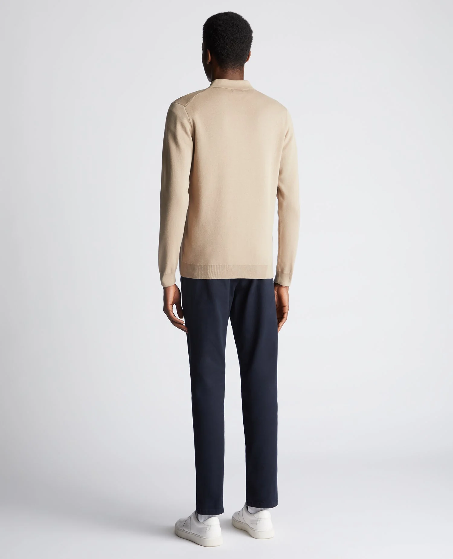Sand long sleeve 3 buttoned polo in all over half milano structure with a super soft stretch.