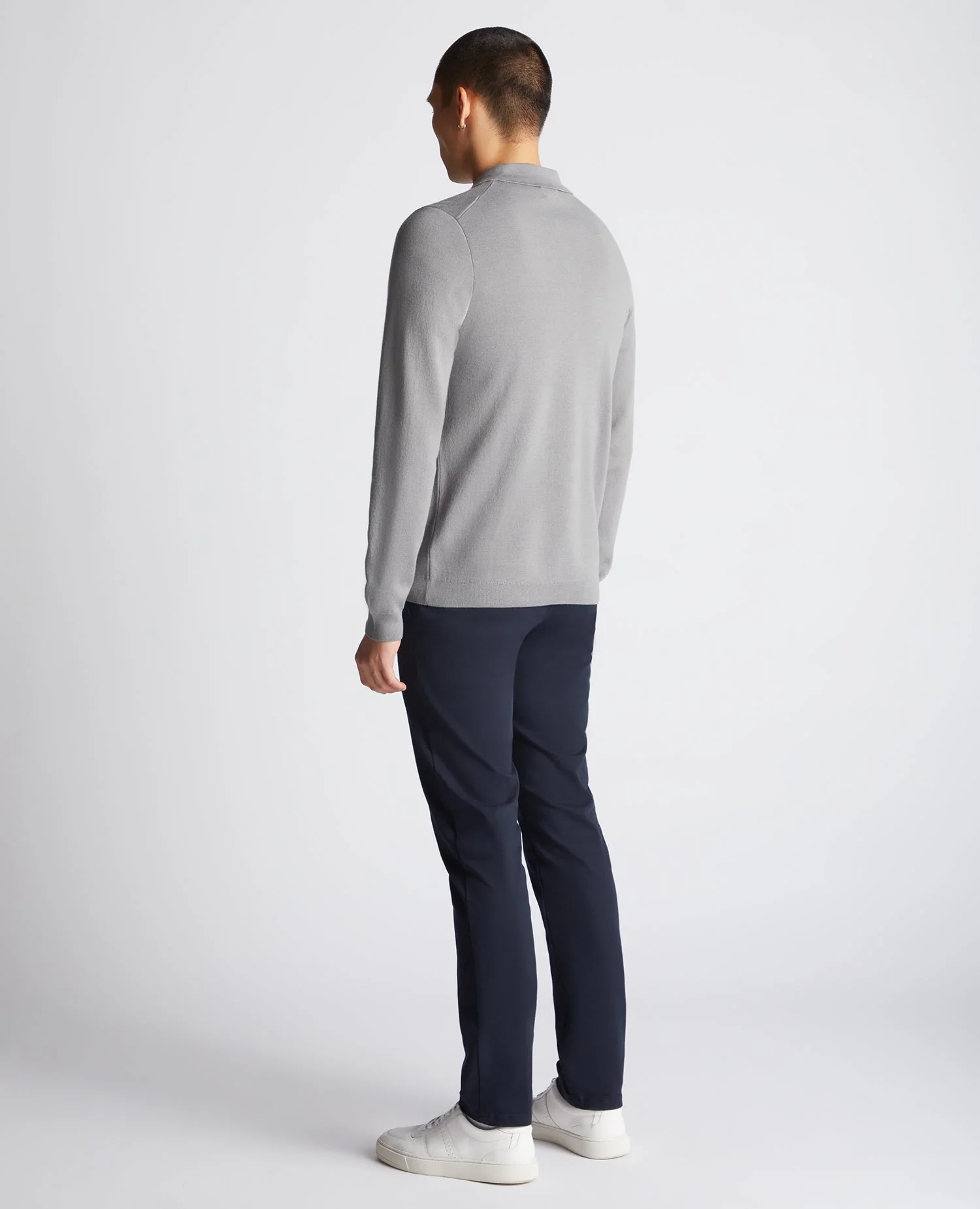 Grey long sleeve full buttoned shirt cardigan in all over half milano structure with double side patch pockets