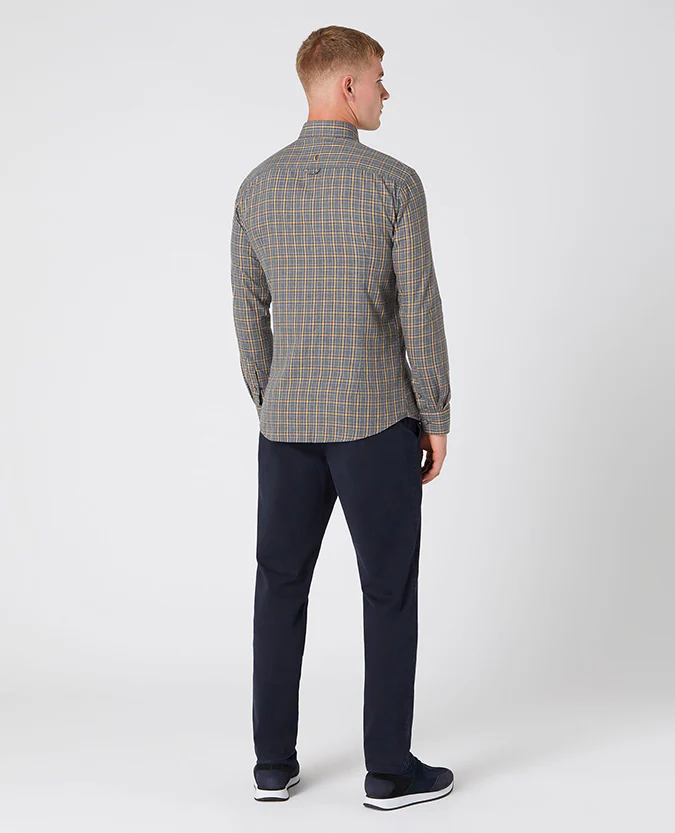 Grey slim fit checked cotton shirt with button down collar and front placket.