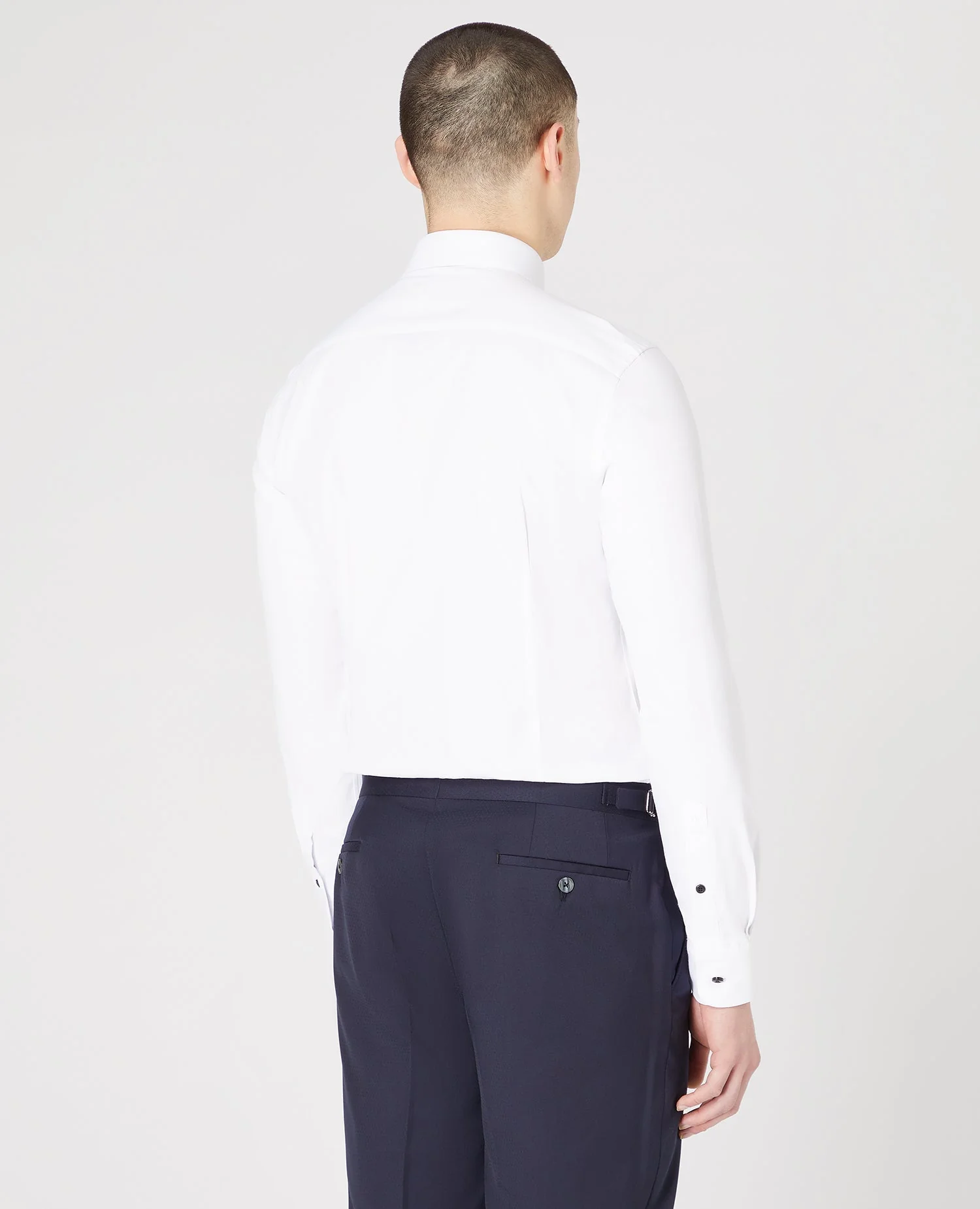 This is formalwear with a modern edge. Note the black buttons that give this shirt a sharper, more contemporary edge, while the cotton-stretch fabric keeps it comfortable through long evenings. Cut slim with a clean collar and subtle detailing, it works perfectly for evening events, weddings, or dressed-up nights out.