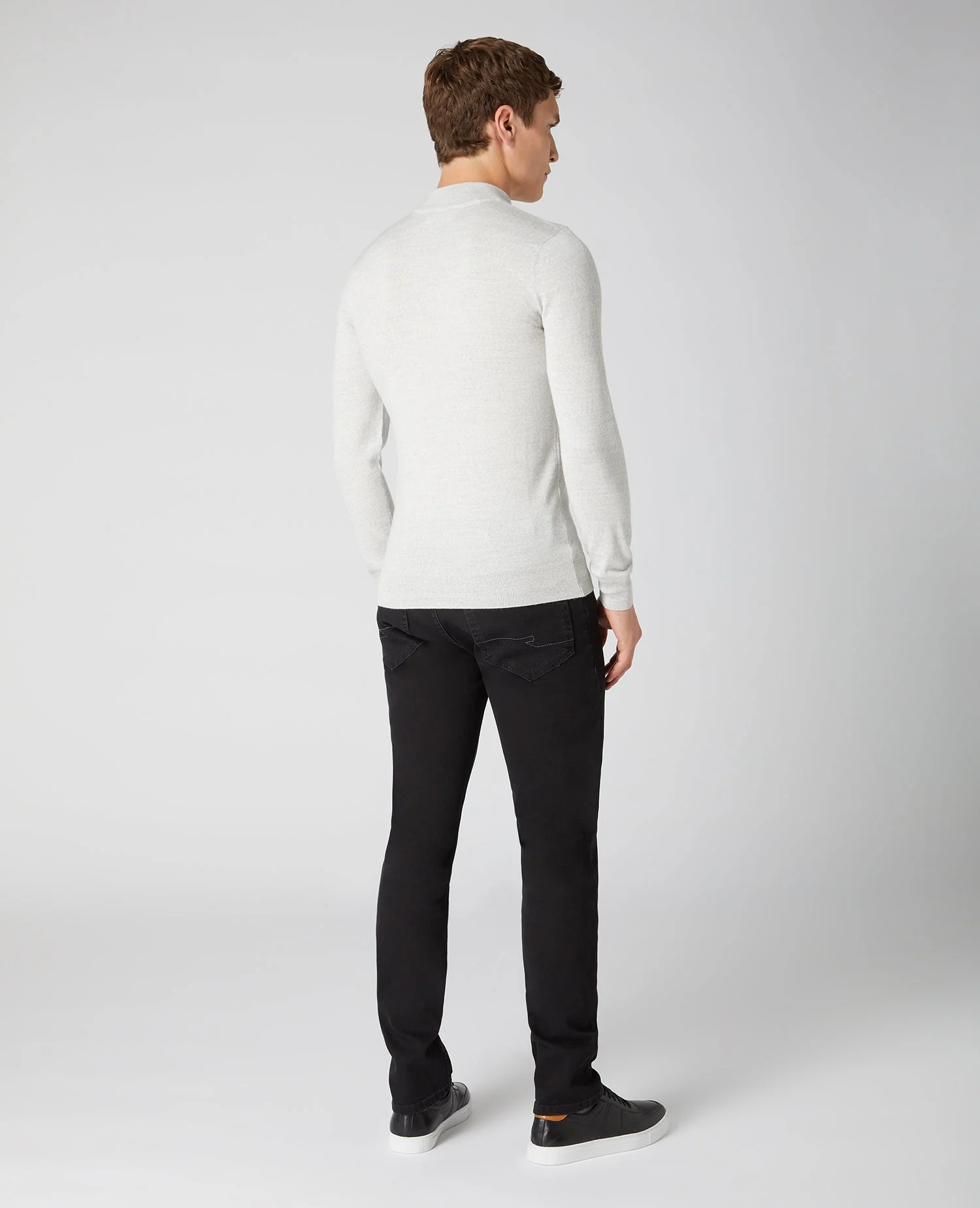 Grey slim fit fine gauge merino wool-blend turtle neck sweater with ribbed cuff and hem