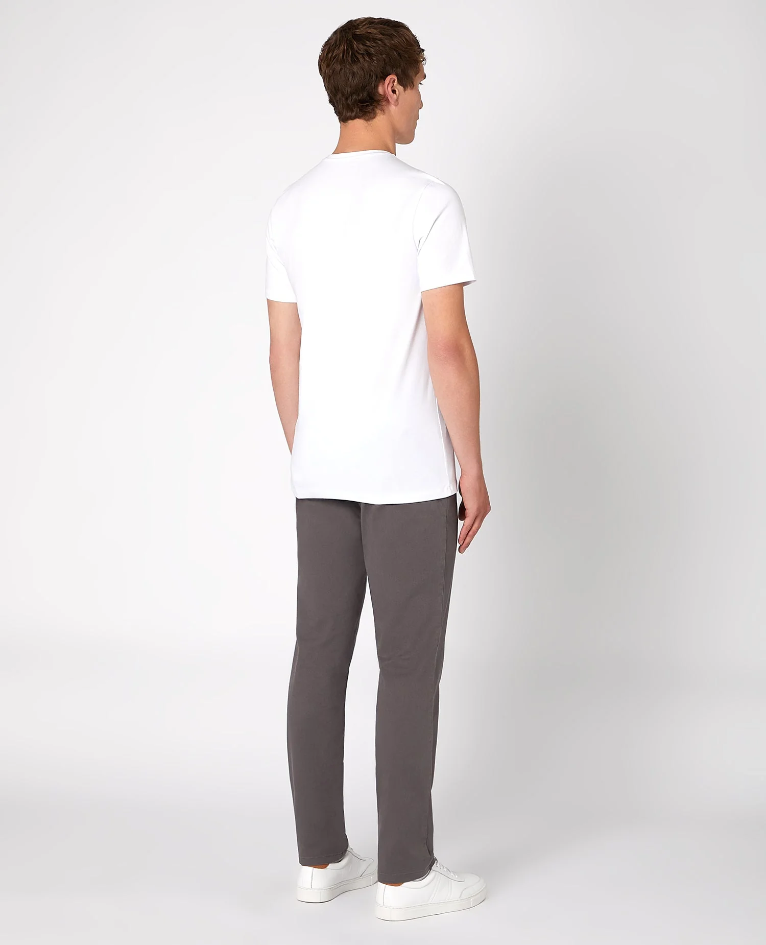 Anthracite slim leg cotton-stretch garment washed chino with zip fly and feature button.