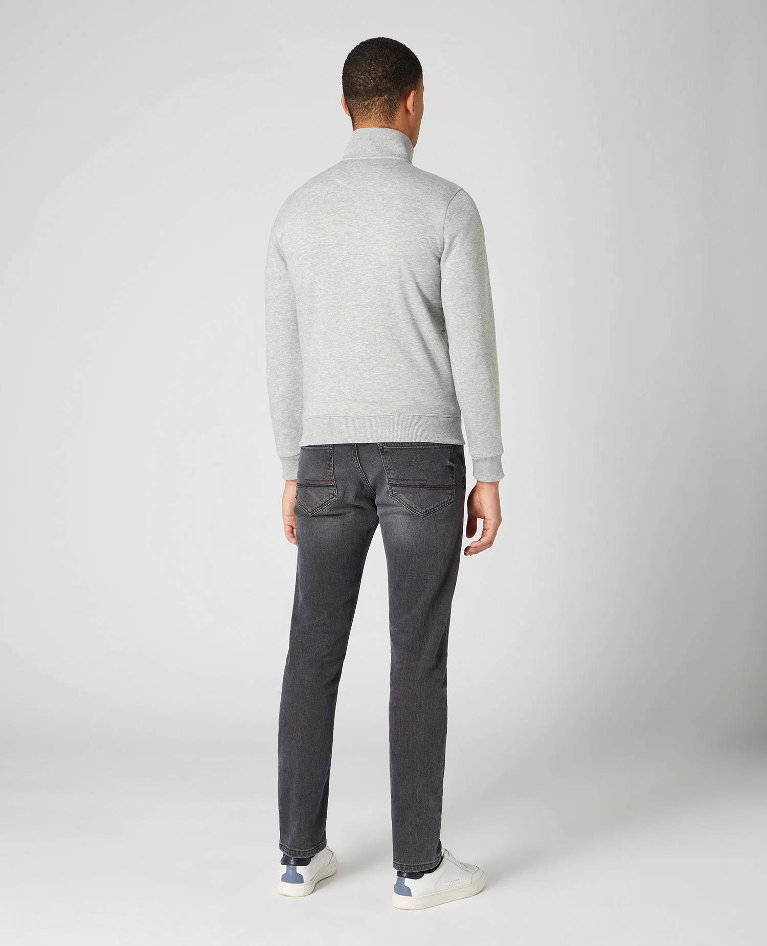 Light grey tapered fit cotton-blend long-sleeve sweatshirt with quilted full zip front.