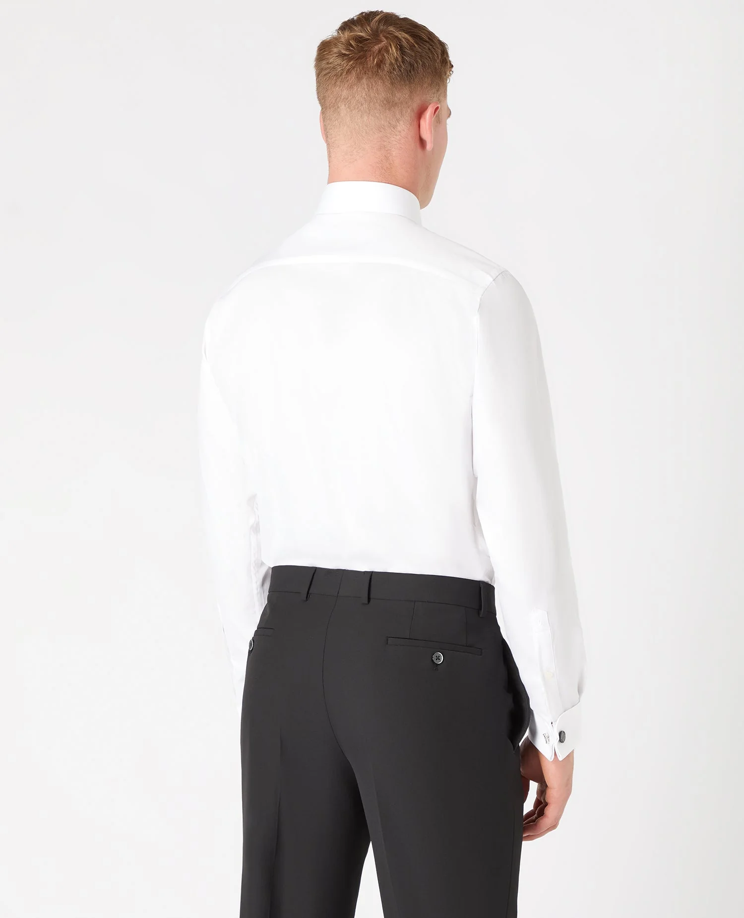 Well constructed and confidently put together, this dress shirt looks the part from the first button to the last. The smooth cotton-blend fabric delivers a crisp finish, while the classic plisse front keeps it rooted in formal tradition. Reach for it for black-tie moments, weddings, or anytime the dress code calls for something a bit special.