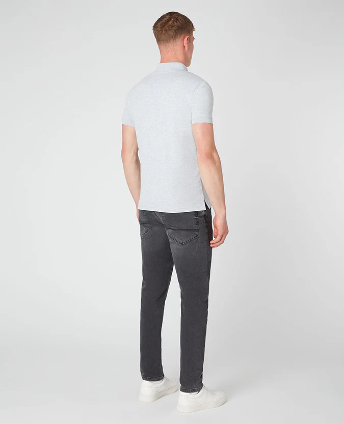 Light grey tapered fit cotton-blend stretch polo shirt, three button closing with printed brotherhood brand mark