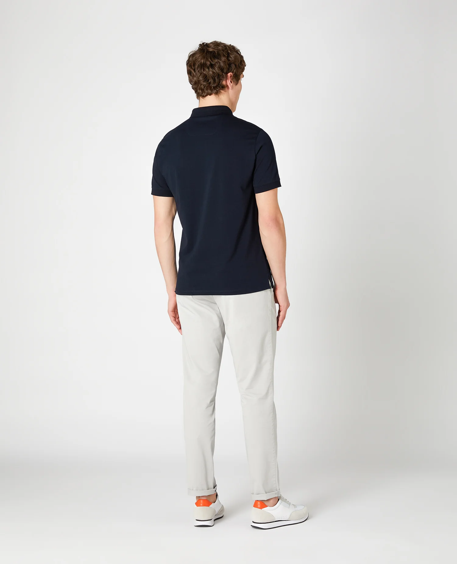 Navy tapered fit cotton-blend stretch polo shirt, three button closing with printed brotherhood brand mark