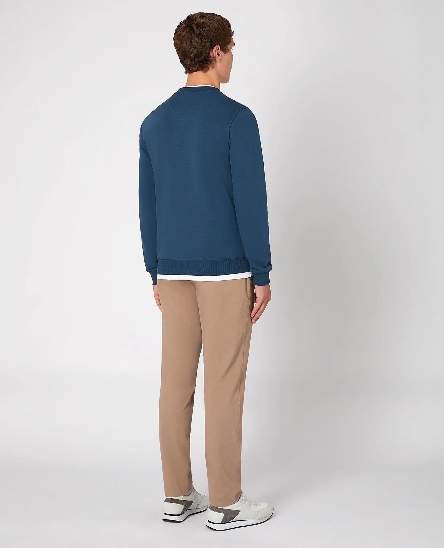 Blue tapered fit cotton-blend loopback sweatshirt with collegiate inspired front embroidery and ribbed cuff and hem.