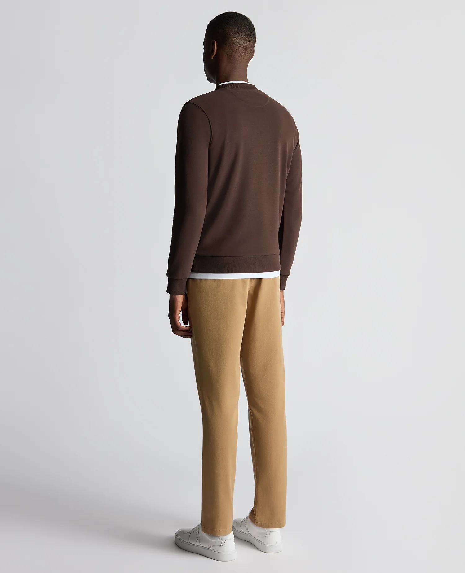 Brown tapered fit soft touch cotton-blend loopback sweatshirt with embroidery on hip and ribbed cuff and hem