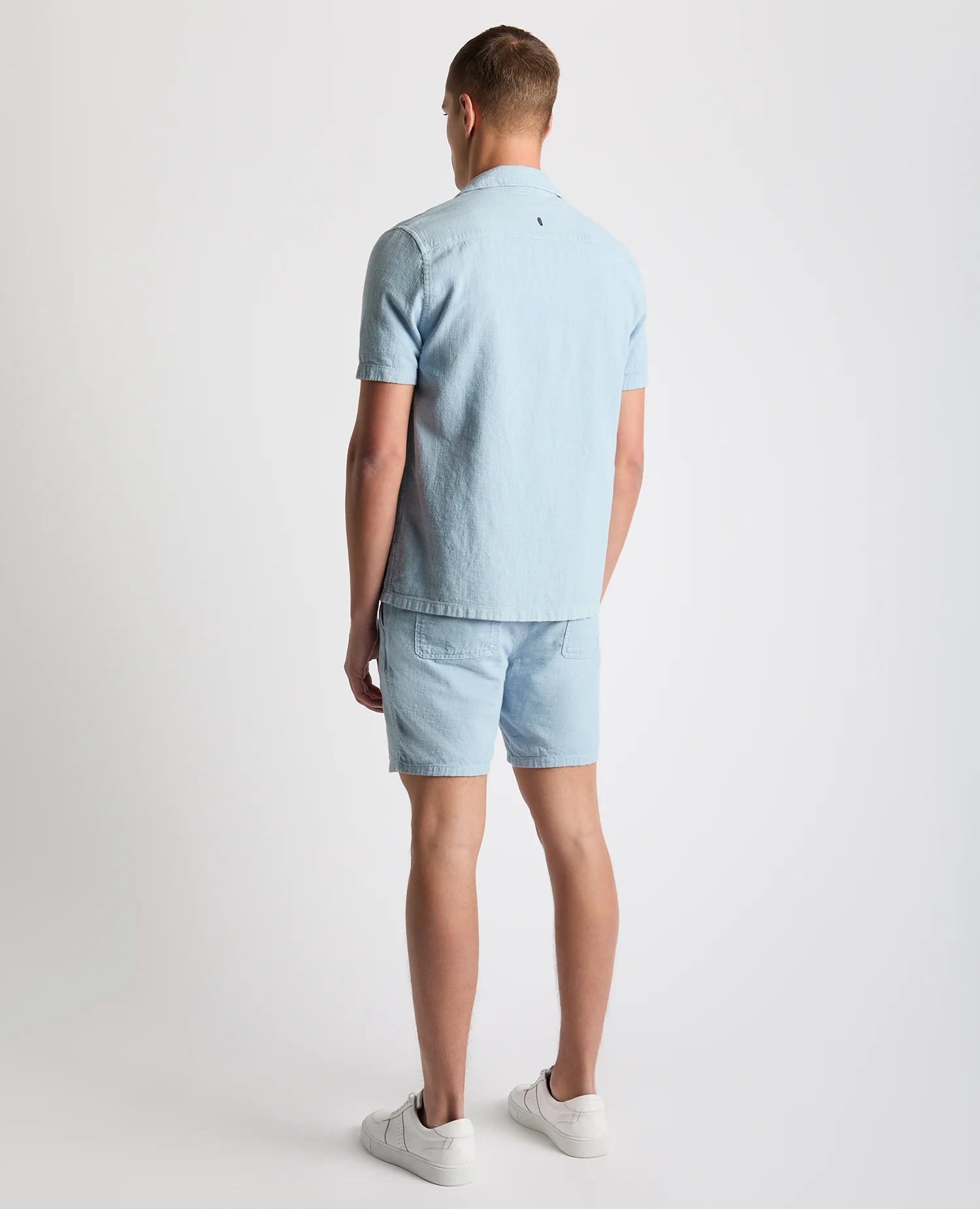 Paolo Tapered Fit Cotton-Linen Shirt in Light Blue