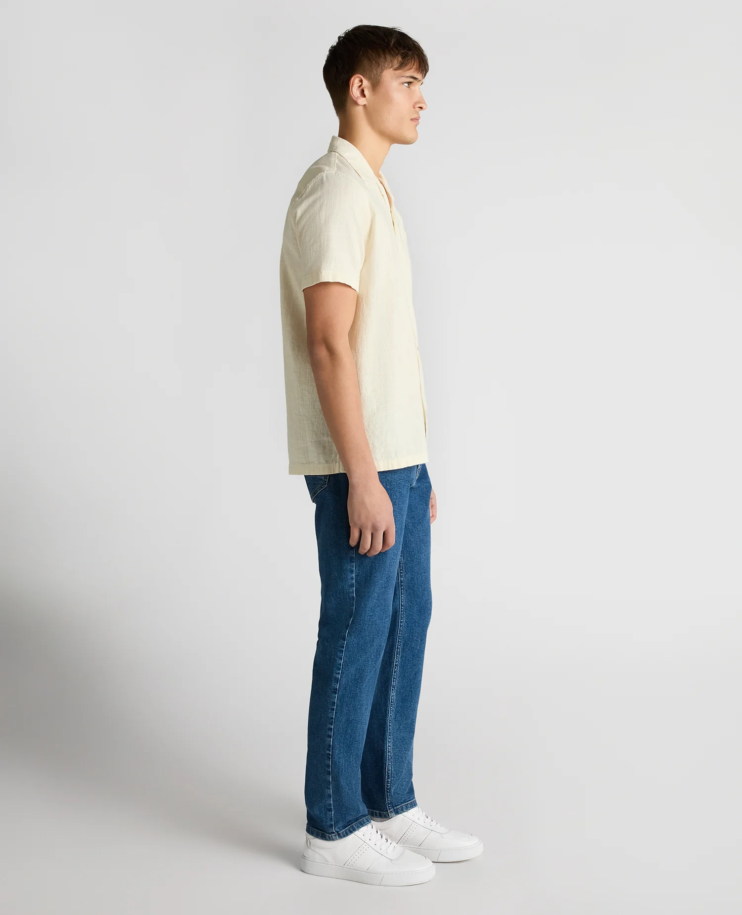 Paolo Tapered Fit Cotton-Linen Shirt in Ecru
