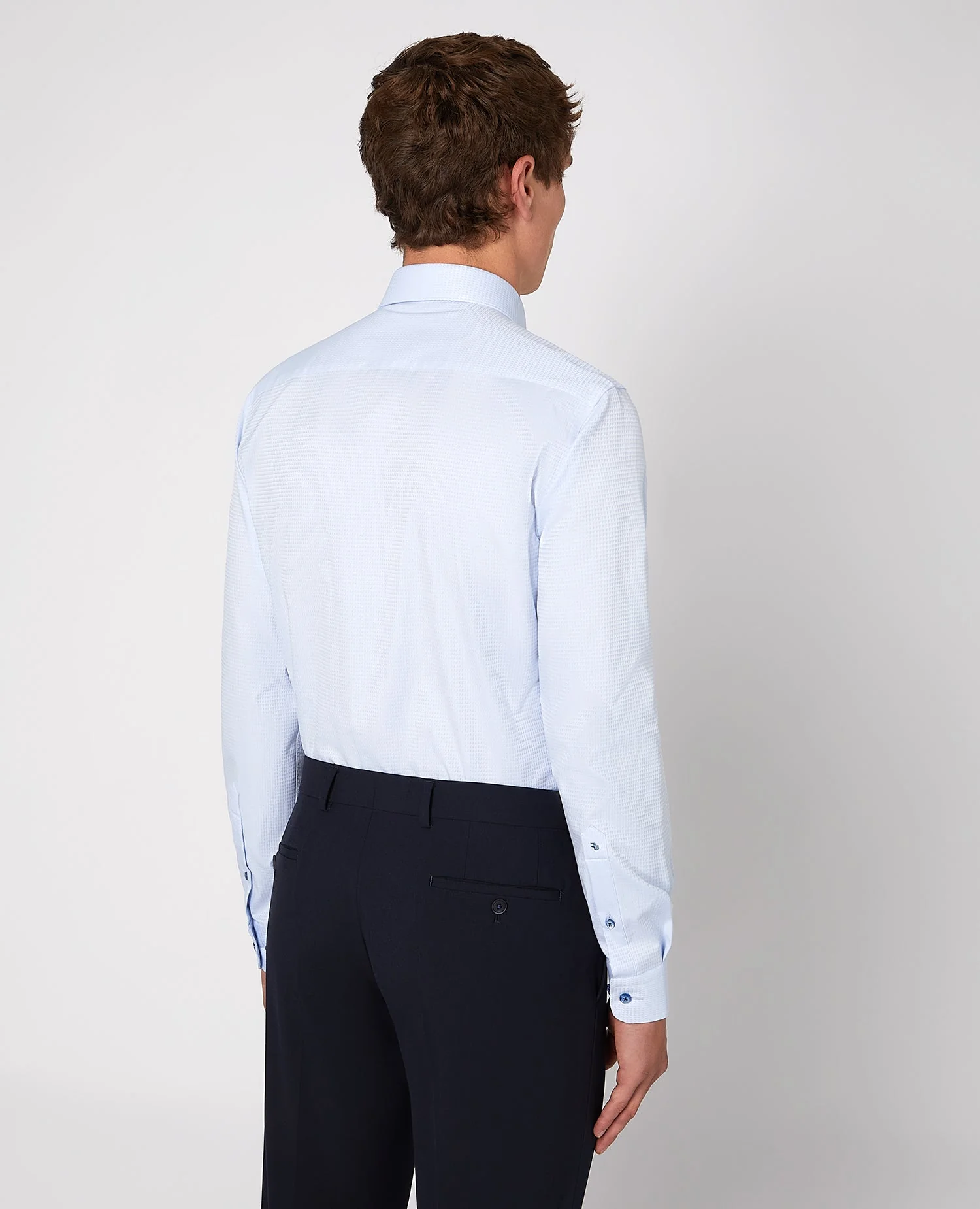 Looks good without asking much from you. Crafted from pure cotton and cut in a tapered fit, this shirt is built for easy, everyday wear. Note the contrast detailing at the inner collar, adding a subtle point of difference that instantly elevates your look.