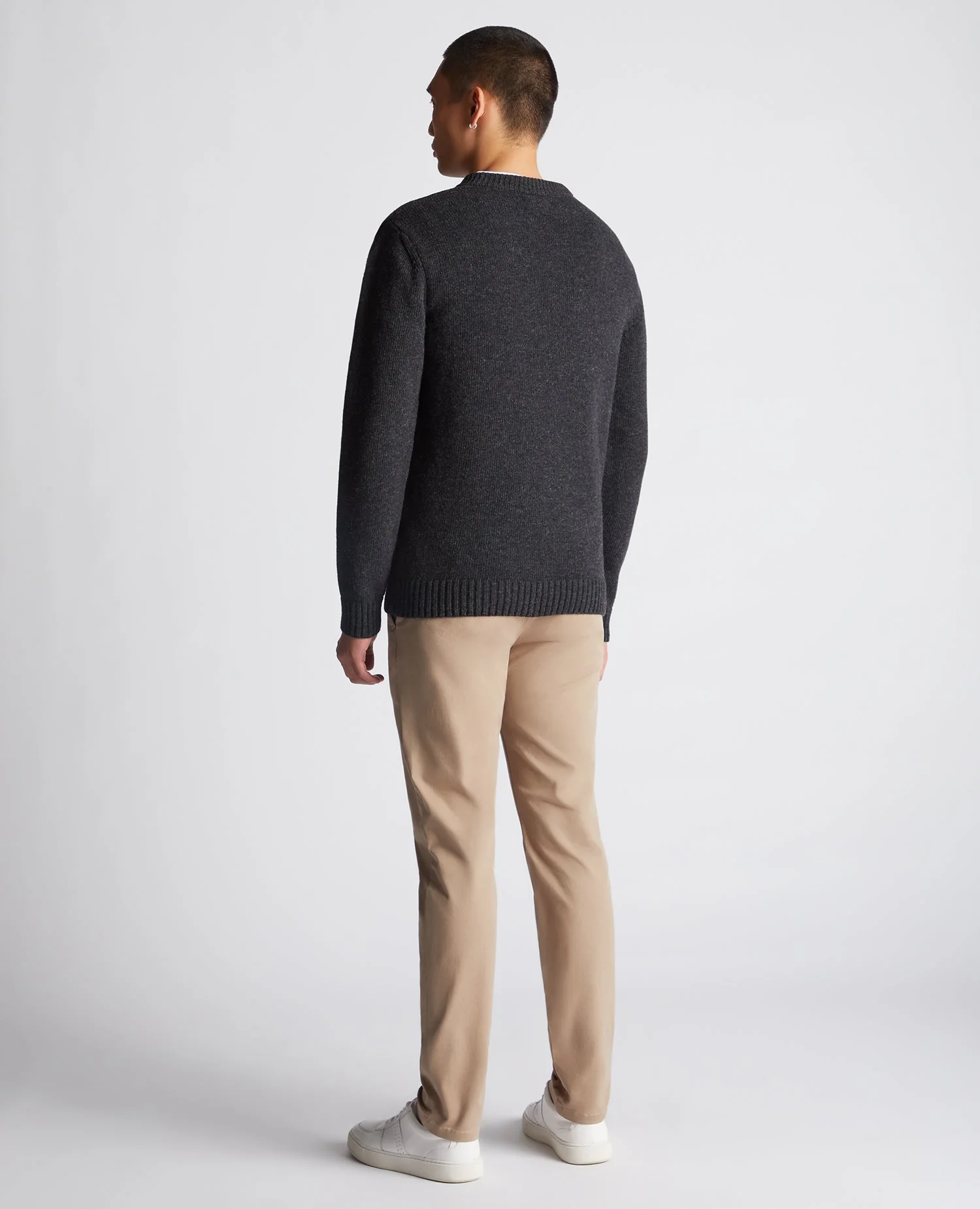 Charcoal tapered fit medium guage lambs wool-blend crew neck sweater with texture design with ribbed cuff and hem.