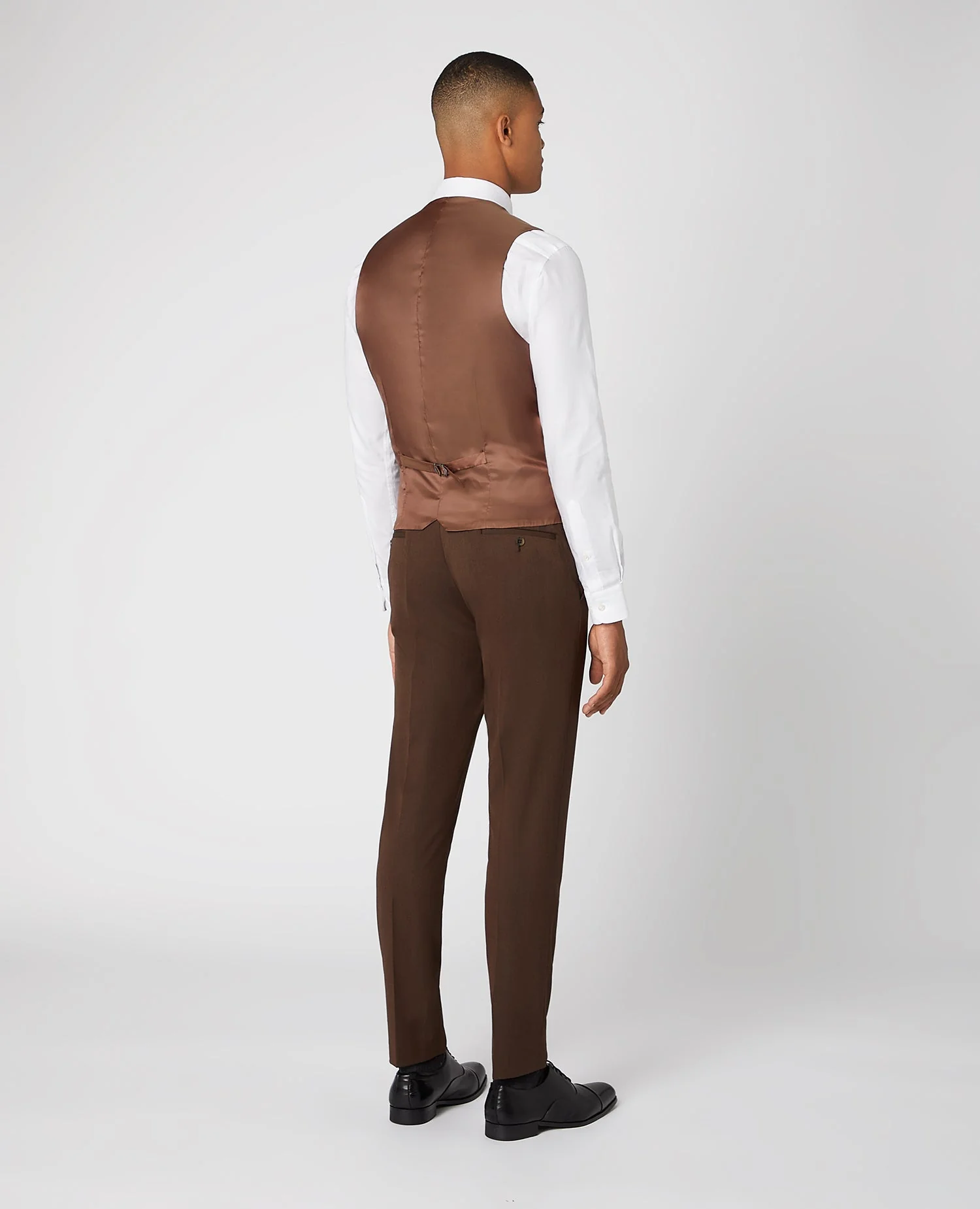 Tobacco x-slim fit polyviscose stretch suit waistcoat. Single breasted, button four with co-ordinating suit (4_22179_46) available.