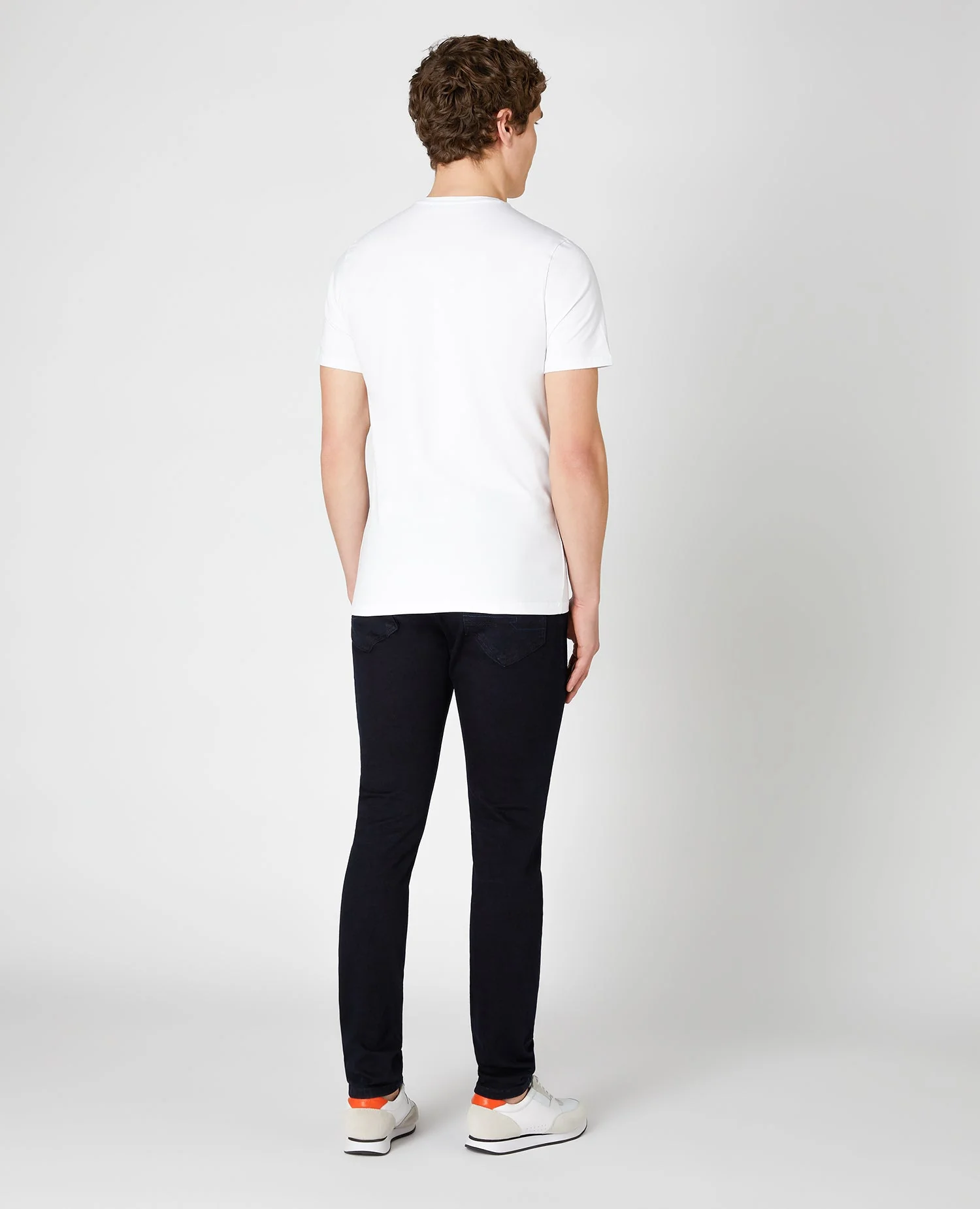 Dark navy x-slim fit cotton-stretch jeans with embroidered hip pockets.