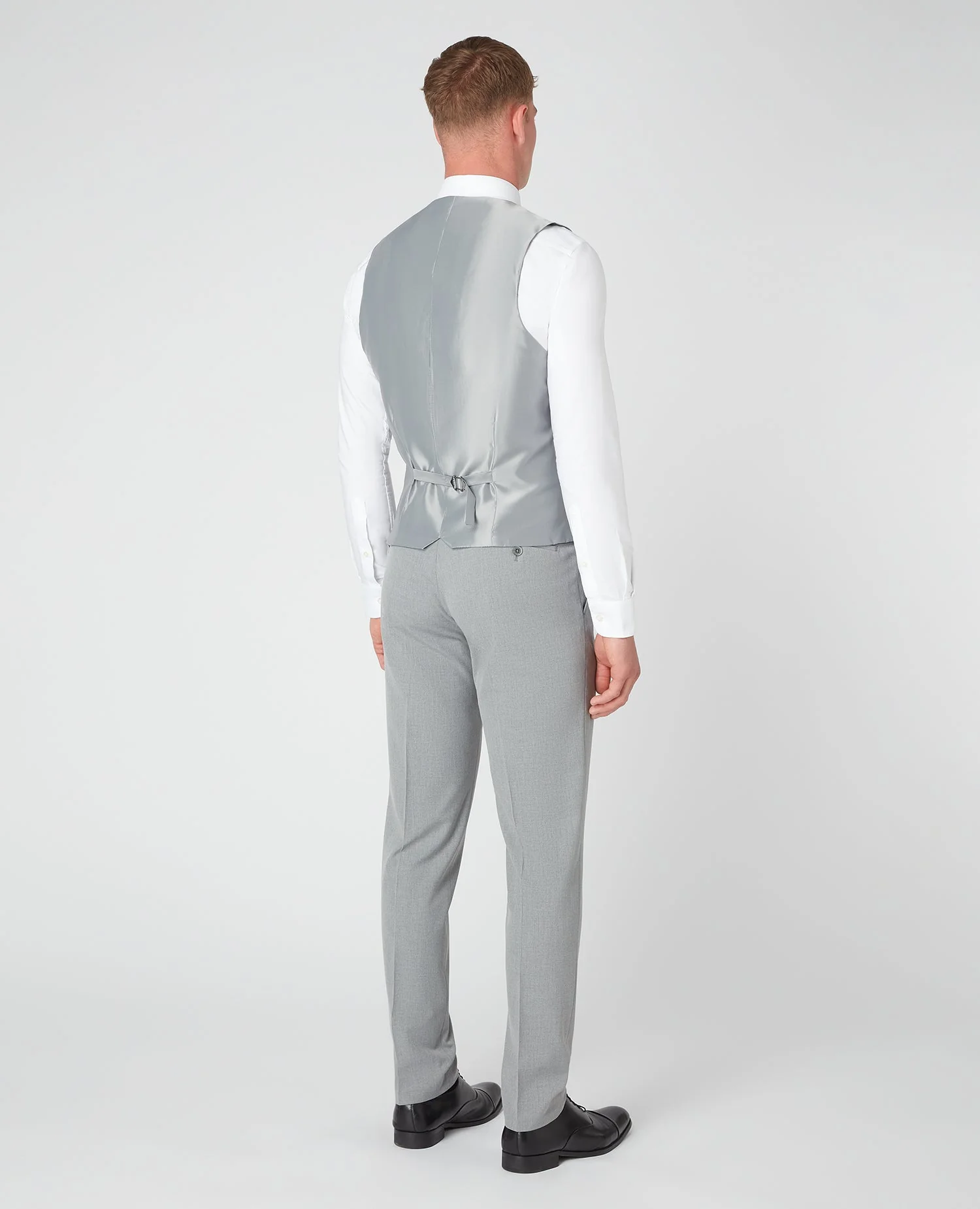 Grey x-slim fit polyviscose stretch waistcoat and slim notched lapels. Single breasted, button two, side vents and straight flap side pockets